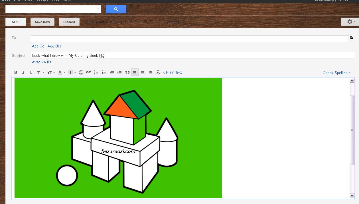 Nasib baik gak dia hantar gambar yang dia sendiri buat. Kalau de gambar tak senonoh (memang tak de pun), tak ke susah.. nasib baik juga dia tak pandai nak masukkan alamat emel orang, plus nasib baik dalam gadget tu tak de alamat kontek mengontek ni.. Kalau tak, memang kena gelak lah saya ni kan..